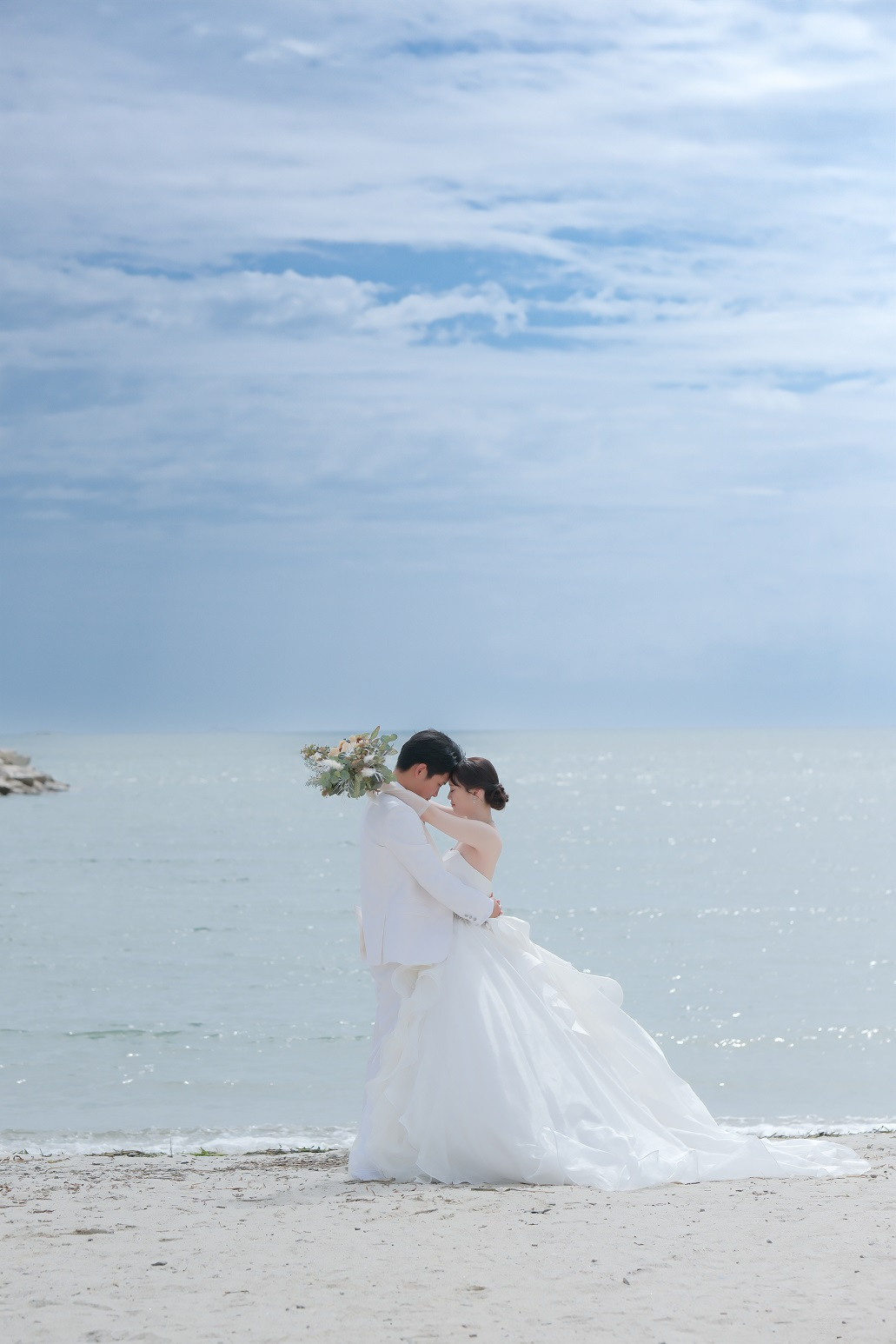 海や夕日バックであれば結婚式当日のウェルカムボードなどに最適でお洒落なグッズを置くこともできます◎