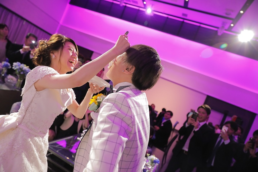 披露宴でケーキ入刀の後に行う【ファーストバイト】!