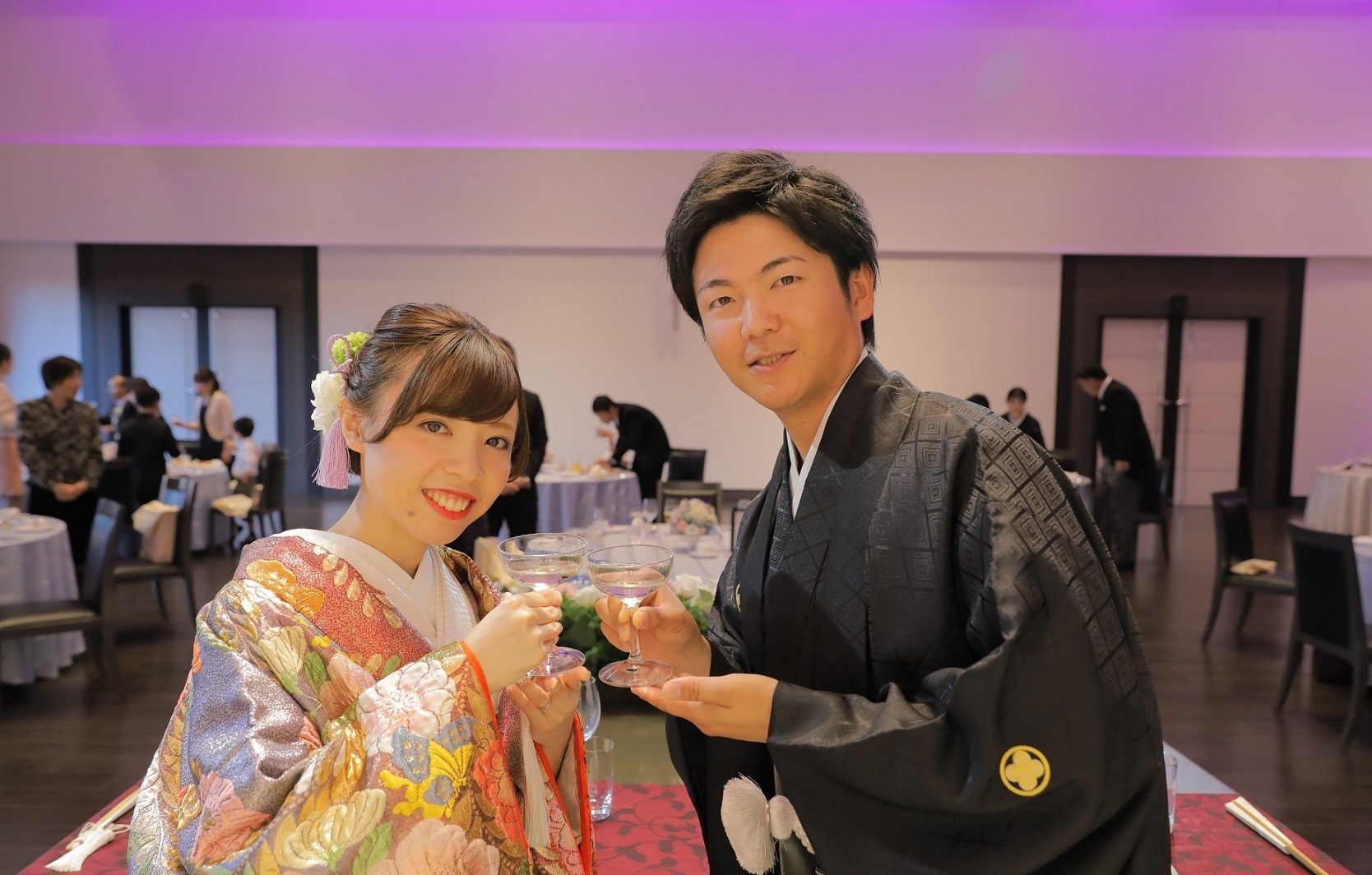 和装にも様々な種類がありますが、結婚式でお召しになる衣装で多いのは、色打掛と白無垢です◎