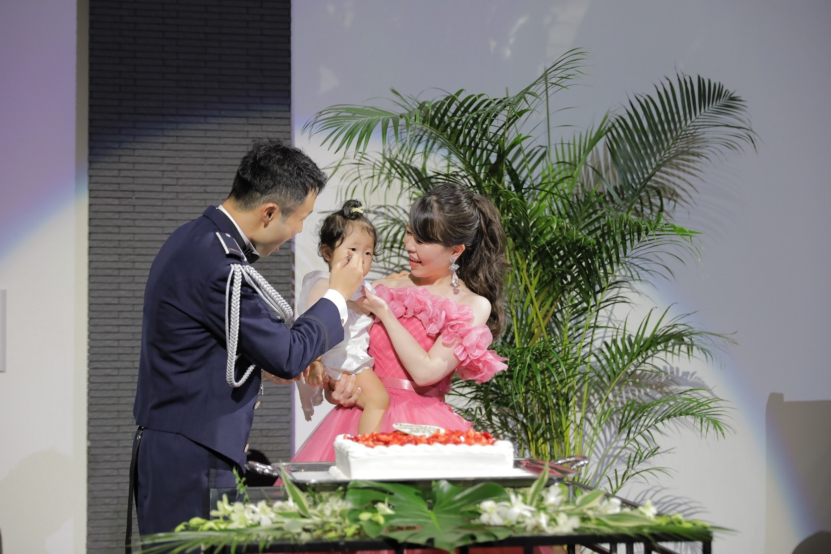 ゲストの方へケーキを食べさせる演出です