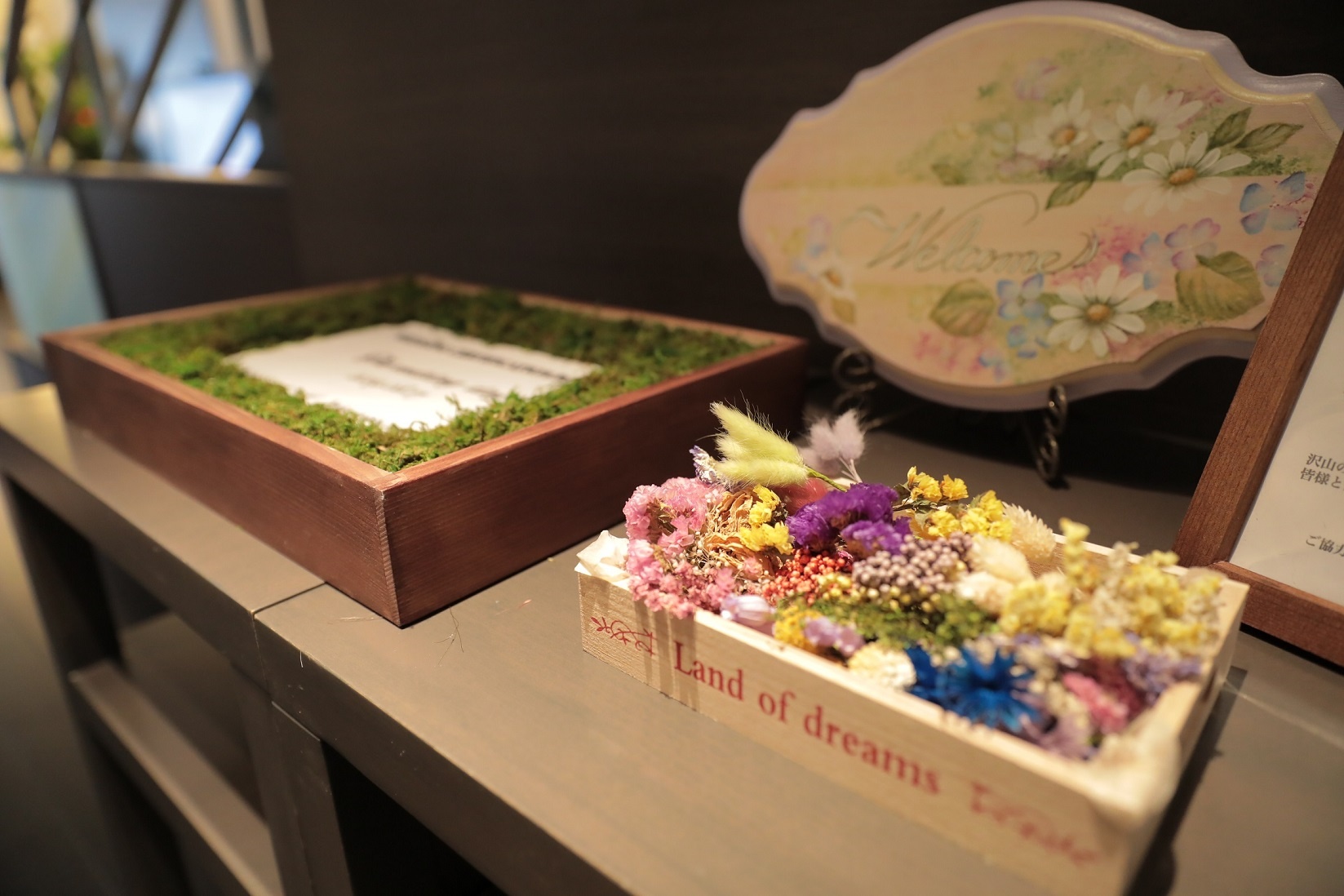お二人の誓いの言葉を記したボックスとドライフラワーを用意し