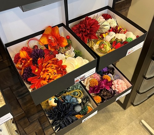 造花やドライフラワー、生花をつける方もいらっしゃいます