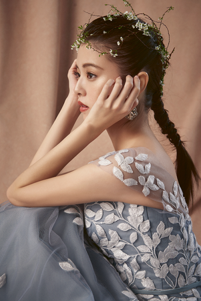 軽やかに重ねられたチュールとリズミカルな葉っぱのモチーフで、