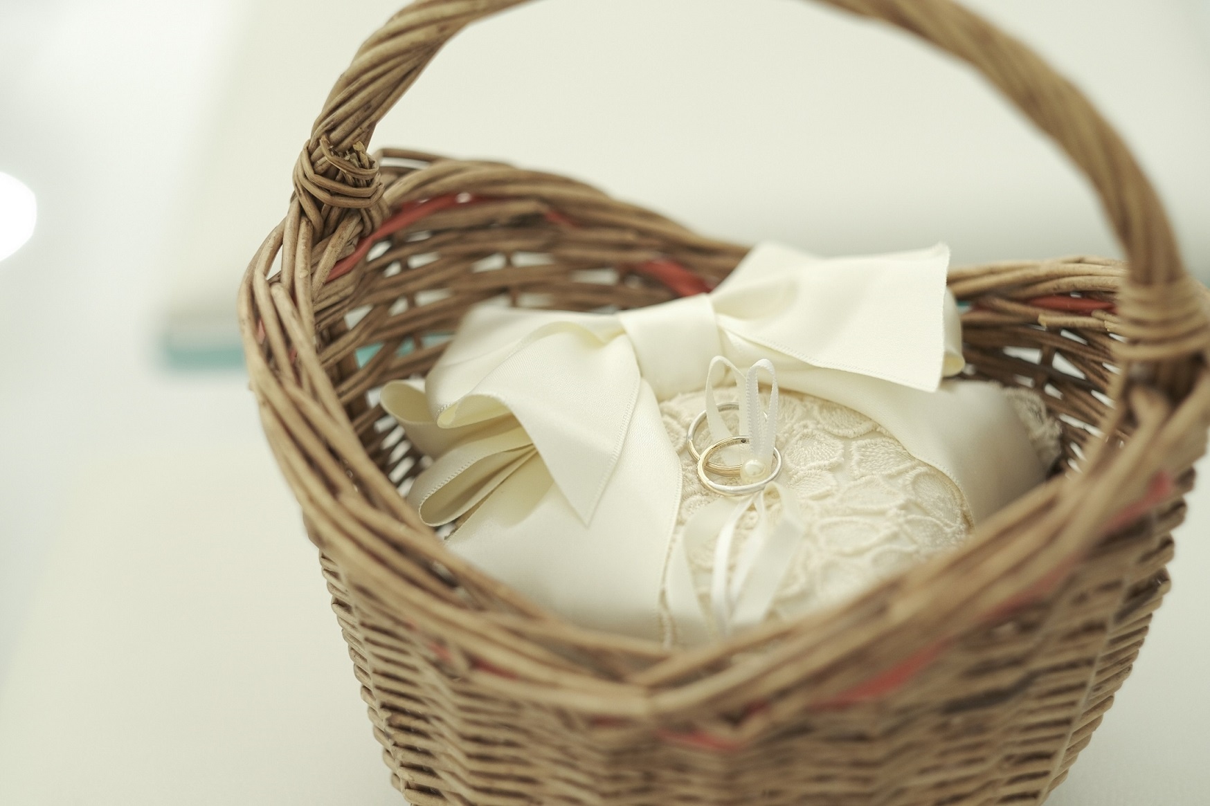 リングピローのリボンに指輪を通すデザインが多いですが、
