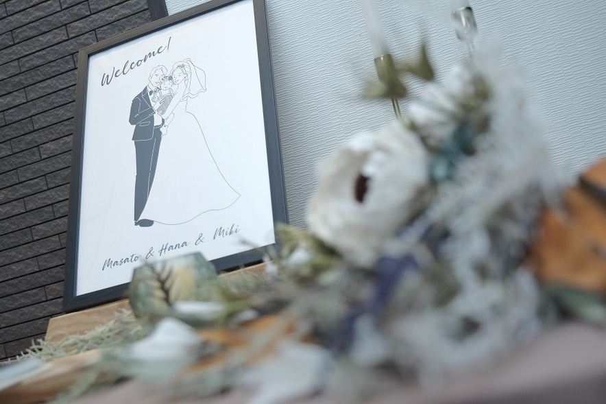 ウェルカムボードは、お二人の似顔絵や写真をボードに収めて一番見目やすいところに飾るものになります!