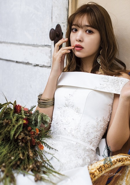 ネックラインが大きく開いており、両肩を露出したデザインです