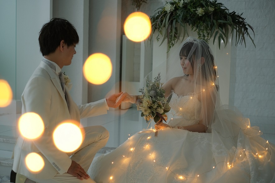 照明の色やグッズを使用すれば画像のように幻想的でロマンチックな雰囲気のお写真を残すことができます♡