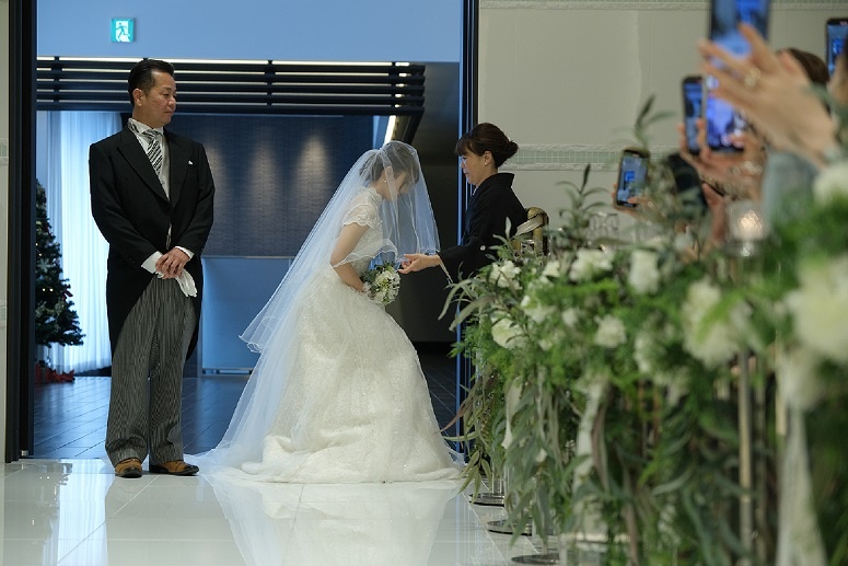 「母親から娘にする最後の身支度」とも言われるベールダウン。