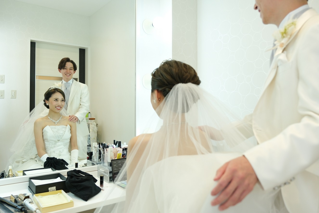 挙式前のお仕度からゲストの皆さまをお見送りするまでを写真にのこすとができます!