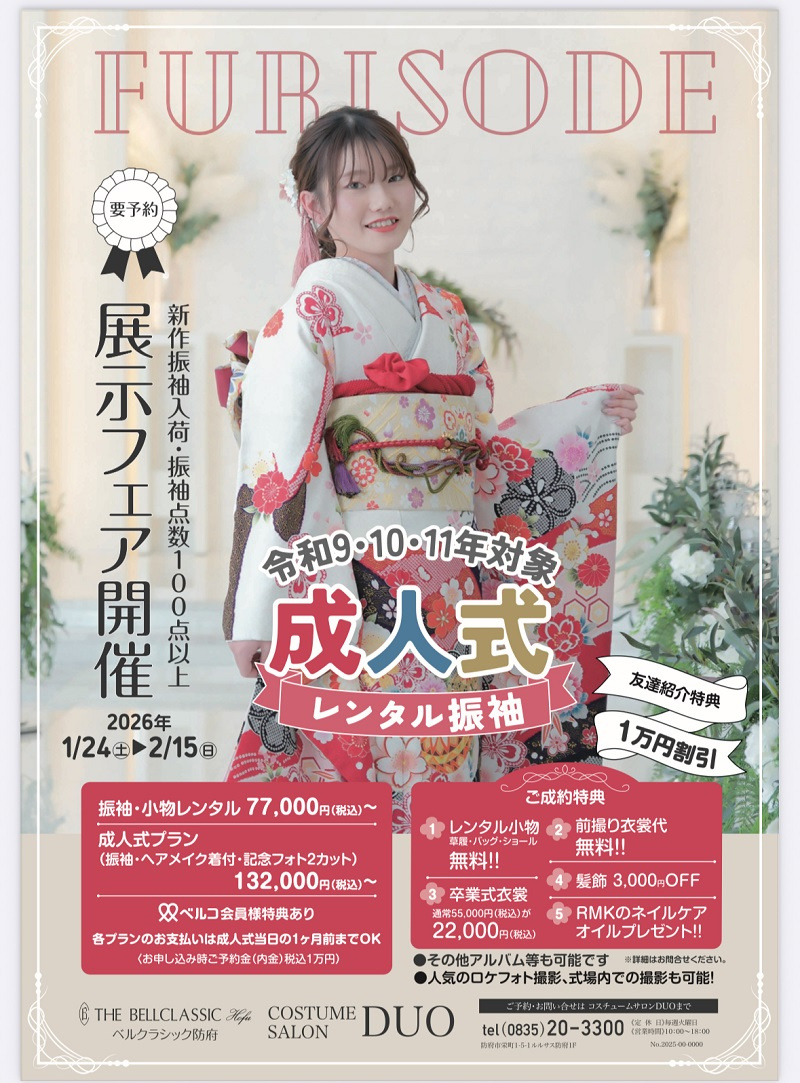 令和9年から11年に成人式を迎えるお客様対象になります。