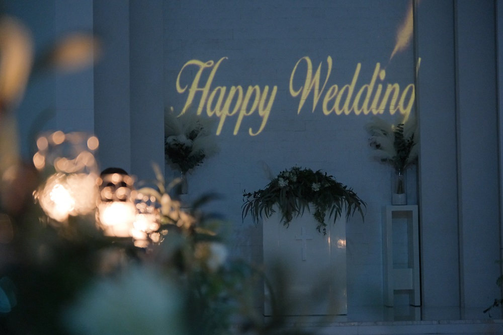そして挙式入場前マッピング映像を上映後新郎新婦様の入場です