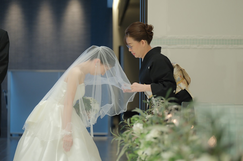 新婦Tさんはお母様よりベールダウンをいただき、お父様とバージンロードをお進みいただきました