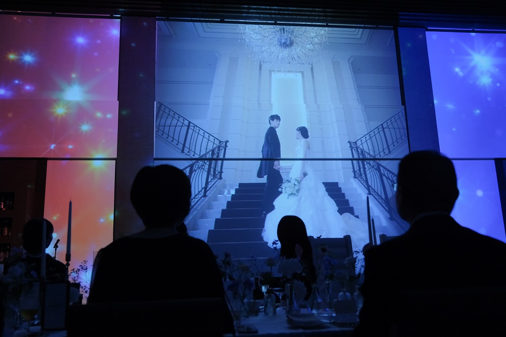 披露宴では、オープニングマッピング映像を!とても迫力がありました!