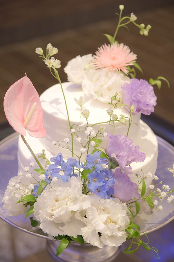 そしてウェディングケーキにもお花を使用!シンプルかつとっても可愛いウェディングケーキになりました!!