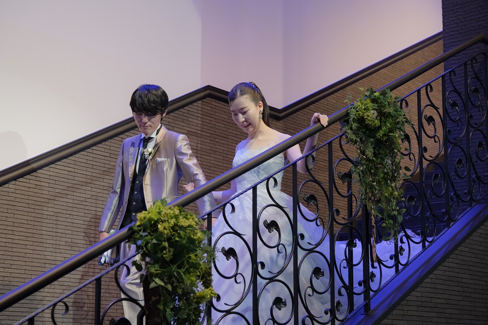 お色直し後の入場は階段上からのご入場!