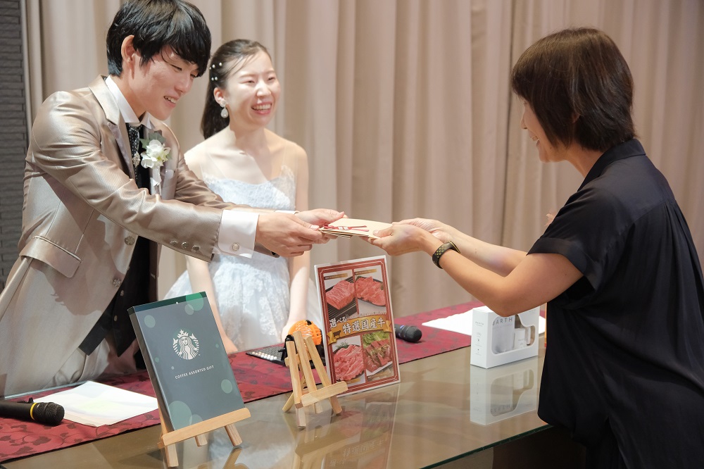 退場後はゲスト一人ひとりに感謝の気持ちとプチギフトをお渡しいただきました