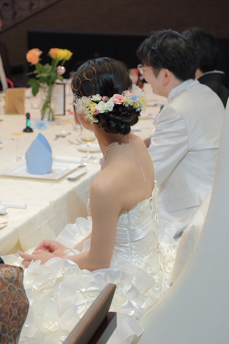 事前に披露宴会場でリハーサルを行い光の加減などをみて調整を行いました