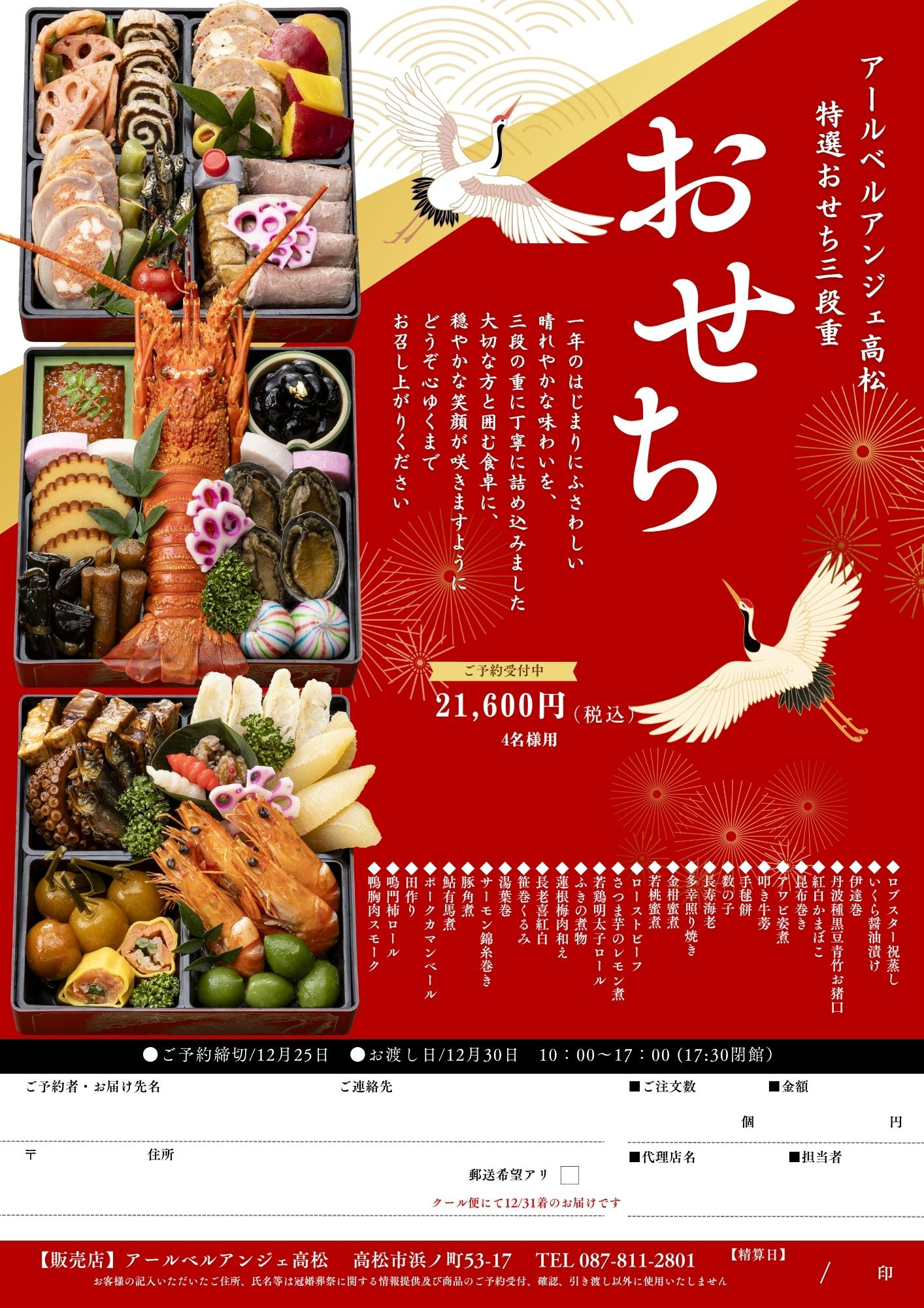 【アールベルアンジェ高松 特選おせち三段重2025】