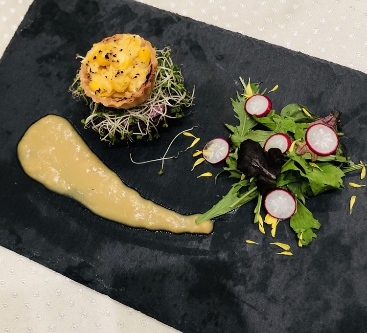”十勝牛フィレ肉のポワレ 西京茄子ソース 玉蜀黍タルト”