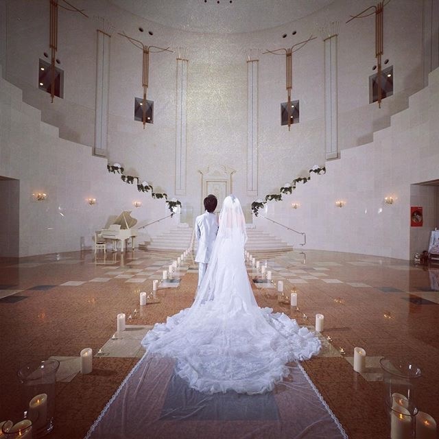 ウェディングドレスとタキシード姿に…