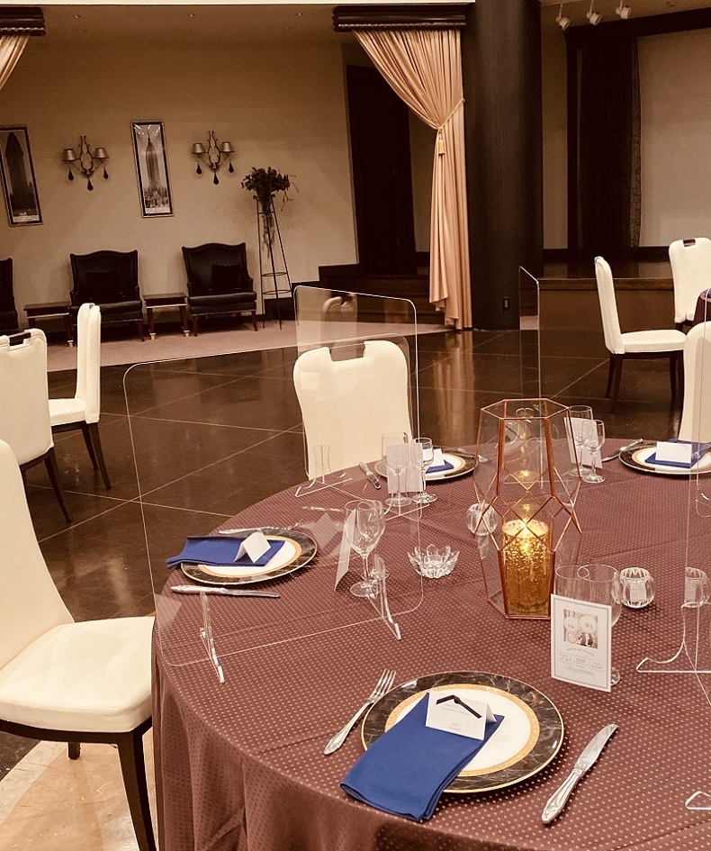 お客様とお客様の間にアクリルボードを設置して