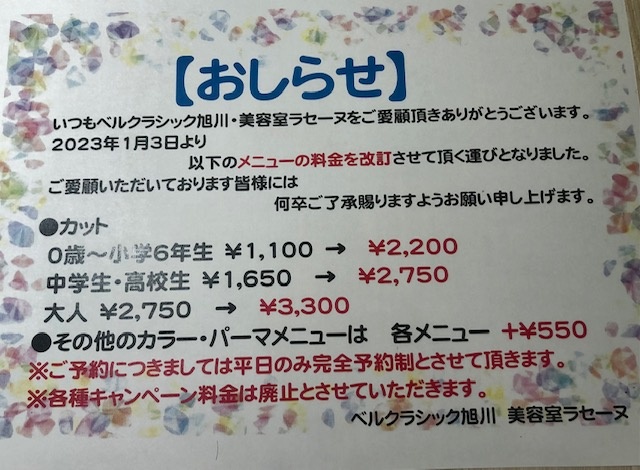 美容室をご愛顧頂いておりますお客様へはお知らせしておりましたが
