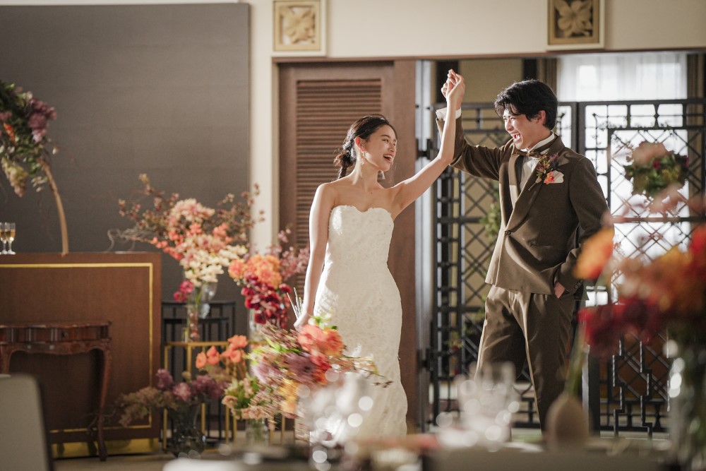 【1.5次会Weddingとは】結婚式と二次会の中間にあたるようなウェディングスタイルで、結婚式ほど堅苦しさはなく、2次会ほどカジュアルになりすぎないのが特徴!