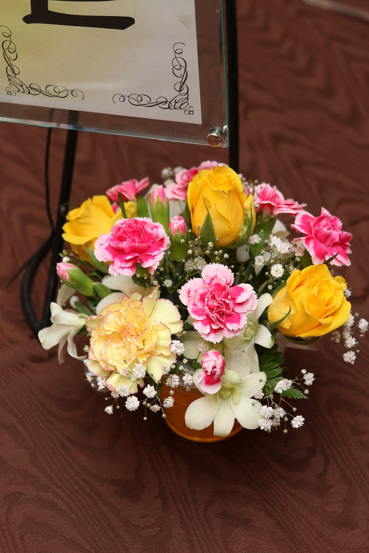 メインテーブルに置かれるお花と同じ色合いも素敵だと思います。
