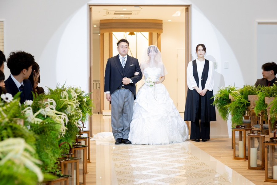 ゆっくりとバージンロードを歩いていきます