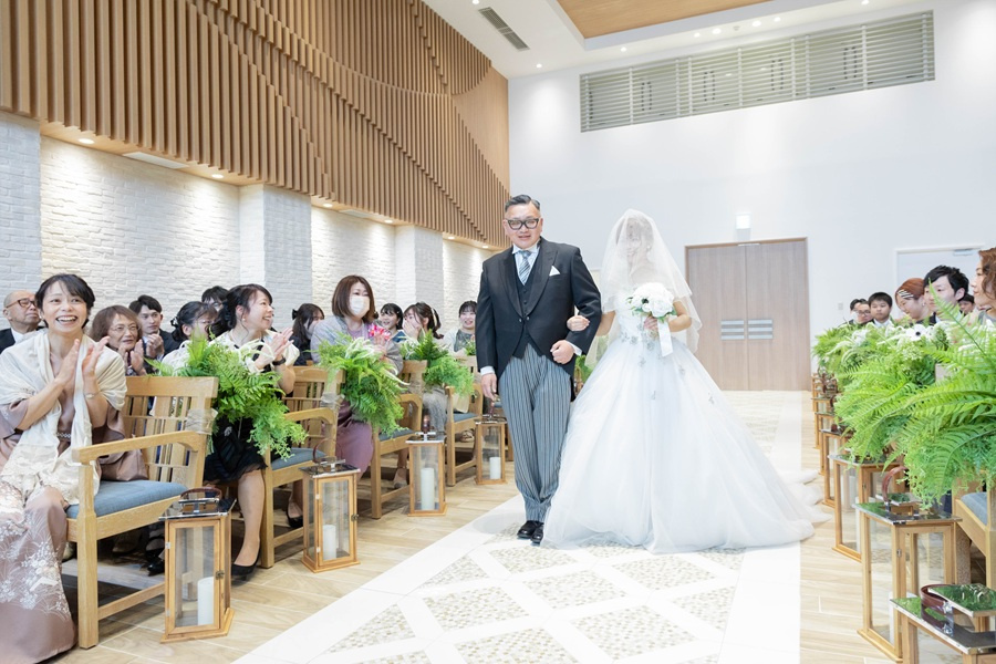 ゆっくりとバージンロードを歩いていきます