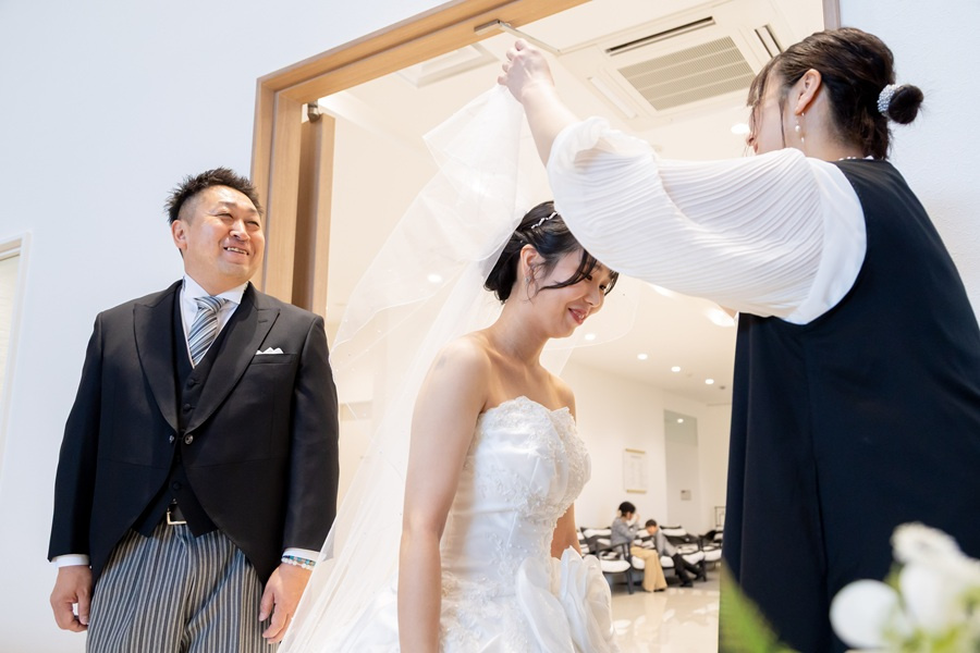 挙式の直前に新婦様のベールを