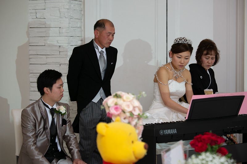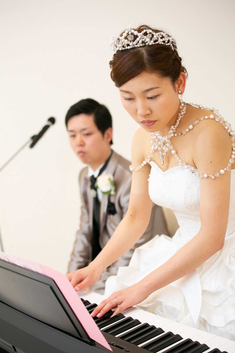 真剣な表情で演奏されている新婦様、