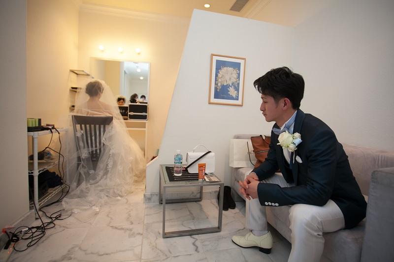 結婚式直前の新婦様のお仕度をそっと近くで見守る