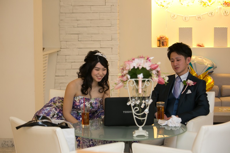 こちらは挙式や披露宴の映像を笑顔が素敵な新婦様と