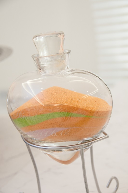 演出では、新郎新婦がそれぞれ砂の入った瓶を持ち、