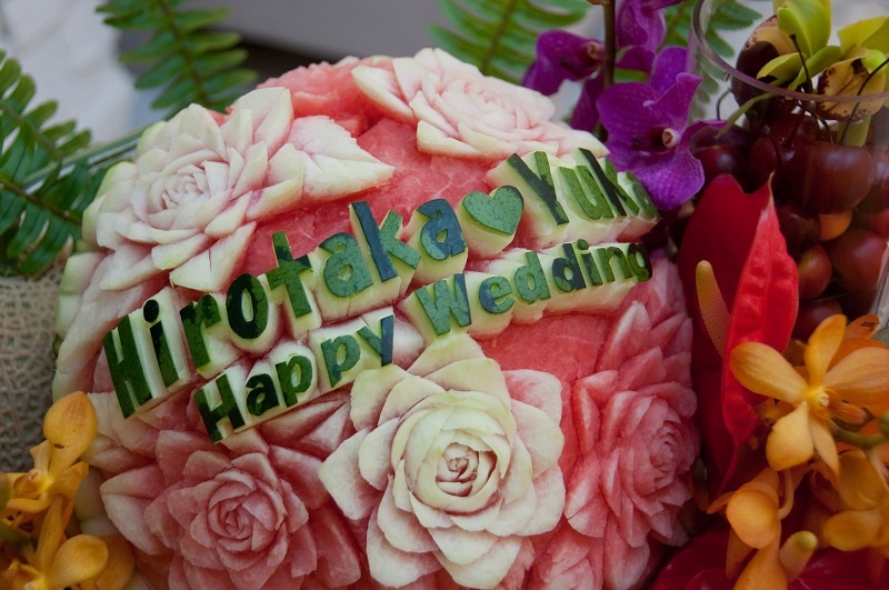 こちらのお写真は本物のスイカをくり貫いて作られています!