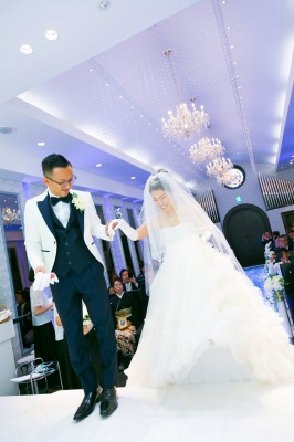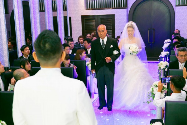 今まで支えてくれた大切な人にエスコートしてもらい、新郎さまの元へ歩む姿は、結婚式で最も感動する神聖なシーンです。