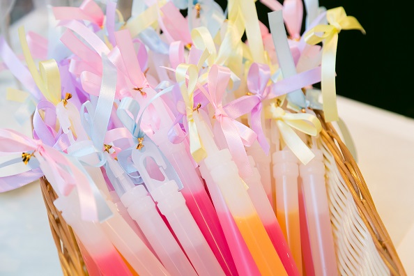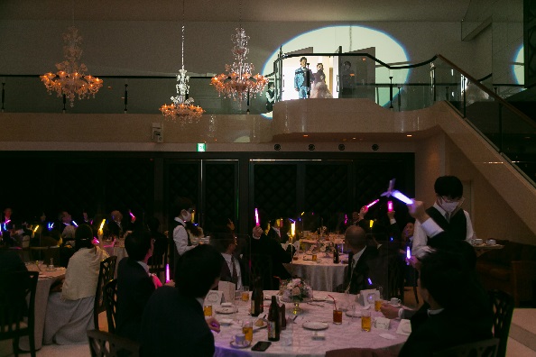 新郎新婦のお二人がご入場される際にペンライトを光らせて
