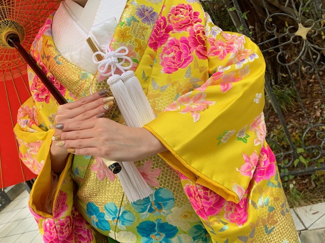 お手元も打掛に合わせて華やかなネイルはいかがでしょうか\(^o^)/