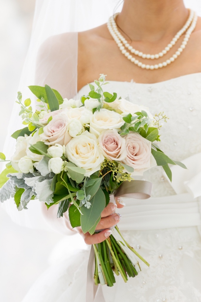 さっき野原で花を摘んできたようなクラッチブーケが最近の人気です♡ ウェディングドレスには白とグリーンを基調とし爽やかに。 カラードレスではドレスの色に合わせたお花をいれると統一感がでて◎ ぜひご参考にしてみてください!