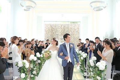 きょうは素敵な1枚のお写真をご紹介! 挙式の入場前、新郎新婦様はドキドキで緊張されますが すべてのセレモニー後、退場するときには笑顔がこぼれます☺♡! そんな素敵な瞬間を写した1枚です♪!