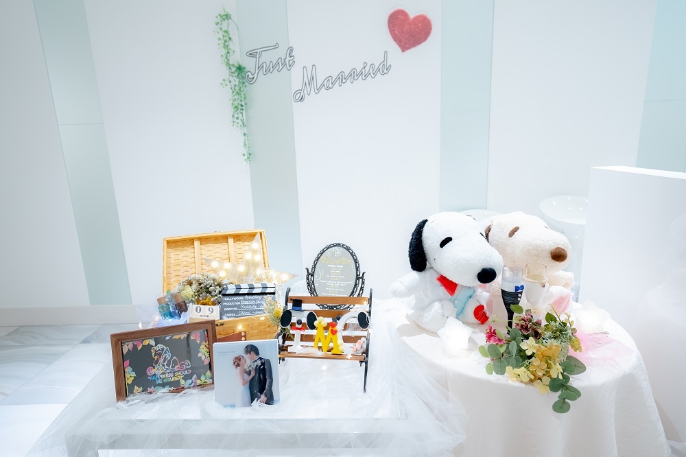 スヌーピーが大好きなおふたりらしいかざりつけです