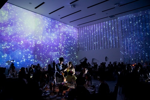 口コミサイトでも高評価!プロジェクションマッピングのご紹介(*´▽`*)! 奈良県ではめずらしくアールベルアンジェ奈良の自慢!!! 大迫力で間違いなくゲストの方に大絶賛して頂けること間違いなしです♬ ご見学の際にご体感して頂ける映像もご準備しておりますので 巨大スクリーンに映し出される大迫力の映像をぜひとも皆さま一度ご覧下さいませ