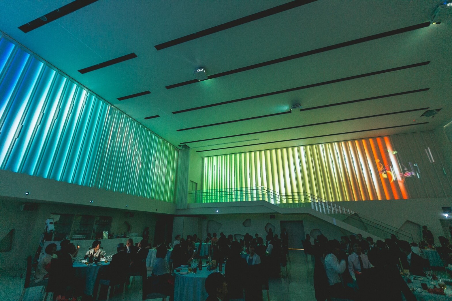 壁に映し出されるプロジェクションマッピングは