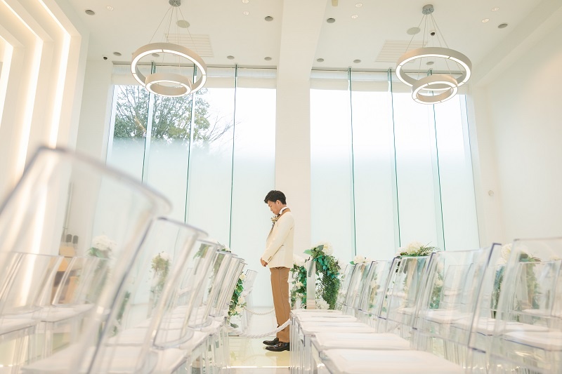 挙式が始まる直前にチャペルにて見せ合うというなんともロマンチックな演出