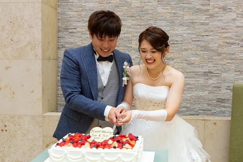 当日はケーキ入刀していただいたケーキをお二人はもちろん