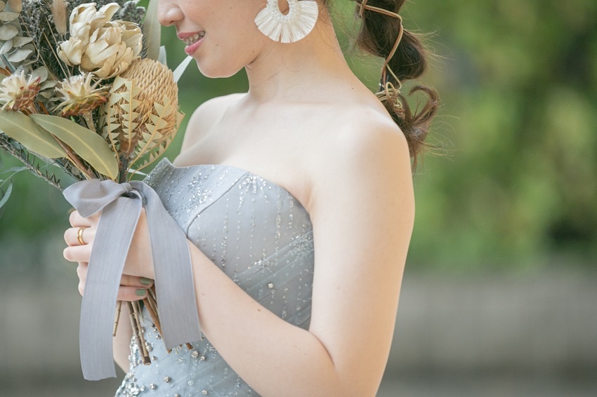 雪の結晶の刺繍や、キラキラしたビジューをあしらったドレスを身にまとえば、一気に冬らしい花嫁に!