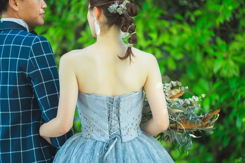 オシャレなバックショットの写真を前撮りで撮っておけば、