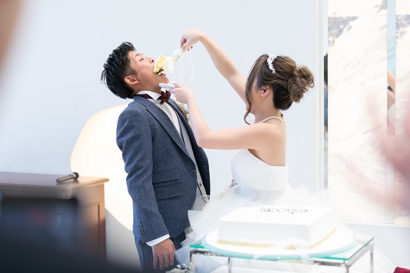 食べさせてあげたり、「お手本バイト」といった新郎新婦様が食べさせ合いをする前に