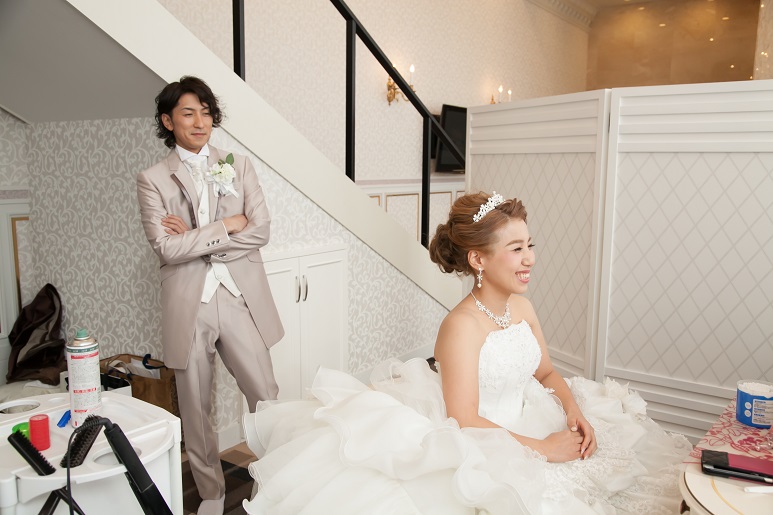 お支度の仕上がりが待ちきれない様子の新郎様(*^_^*)